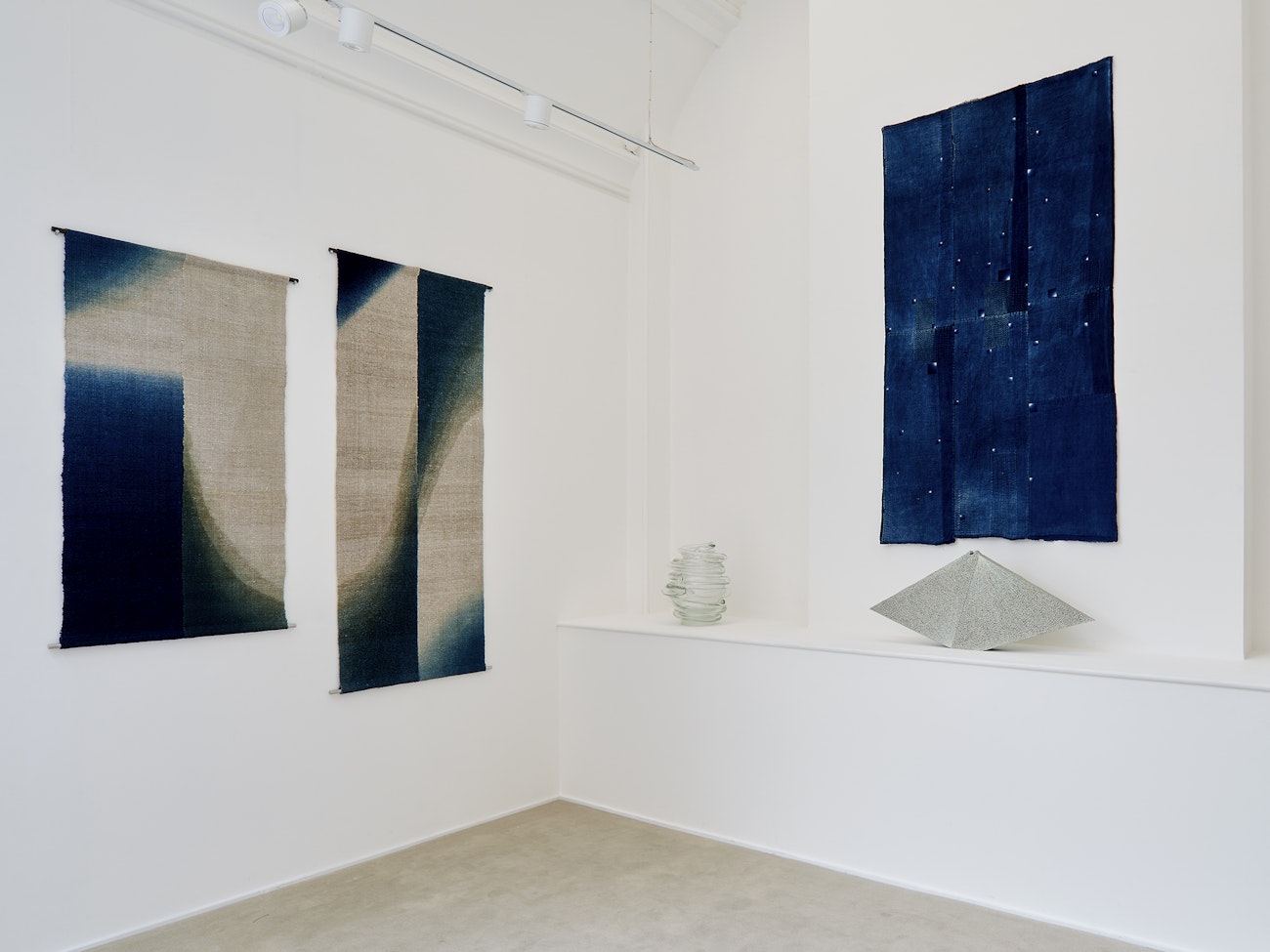 В галерее представлены не только работы современной керамики, но и завораживающие пейзажи Сихоко Фукумото на ткани. Свои уникальные замыслы она воплощает, используя обработку редких материалов (лён, пенька, москитная сетка, ананасовое волокно или ткань, полученную из старых туник) и последующую окраску в потрясающую синеву цвета индиго. Японское ремесло окрашивания ткань в синий цвет, получаемый из листьев индигосферы, ещё в 10 веке получило название – айзоме. Объединяя в своей практике различные культурные наследия, Сихоко Фукумото удаётся перекинуть культурный мост через столетия и создать свои уникальные полотна 21 века, украшающие коллекции музеев Токио, Нью-Йорка, Лондона и др.