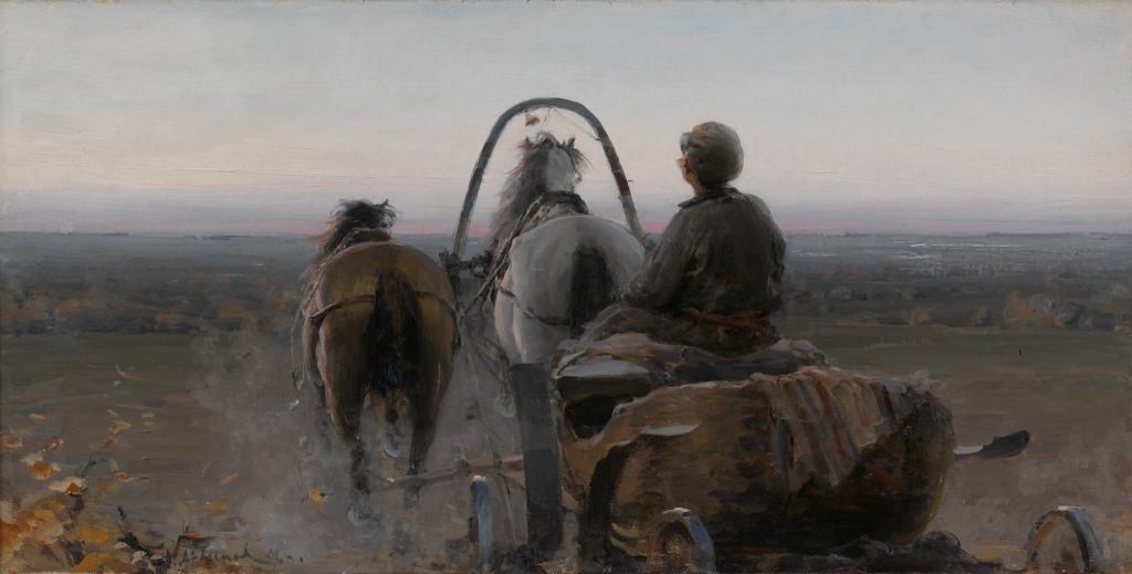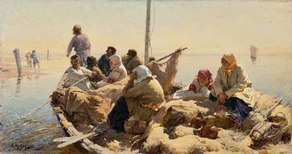 Экскурсия начинается с первой триумфальной работы Абрама Архипова «На Волге», написанной в 1889 году. С этой картины задаются темы, получившие своё развитие в дальнейшем творчестве. Любовь к русскому пейзажу отражается в его живописных работах «По реке Оке» (1889), «Обратный» (1896), картинах русского севера, прослеживается в изображении простых житейских сюжетов. Он любил посещать глухие деревни - краеведам даже удалось установить любимые места художника и деревенские домики, изображенные на его картинах. Он мог не только «услышать, как степь разговаривает», но и передать это чувство через игру света и тени.